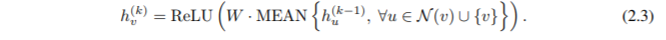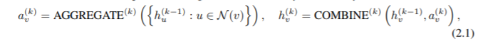 许多其他的 GNNs 可以类似的表示为 Eq. 2.1 (Xu et al., 2018; Gilmer et al., 2017)。
