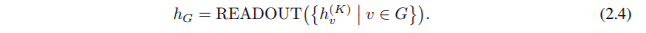 READOUT 函数可以是一个简单的置换不变函数,例如求和或者 graph-level 级别的 pooling 函数 (Ying et al., 2018; Zhang et al., 2018)。