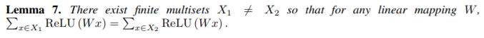 引理 5 中的函数 f 有助于将不同的多重集合映射到唯一的嵌入。它可以通过 MLP 通过通用逼近定理参数化(Hornik,1991)。尽管如此,许多现有的 GNN 使用 1- 层感知器σ°W 代替(Duvenaud 等人,2015; Kipf&Welling,2017; Zhang 等人,2018),线性映射后跟非线性激活函数,如 ReLU。 这种 1- 层映射是广义线性模型的例子(Nelder&Wedderburn,1972)。因此,我们对了解 1- 层感知器是否足以进行图学习非常感兴趣。引理 7 表明确实存在网络邻域(多重集合),具有 1- 层感知器的模型永远无法区分。