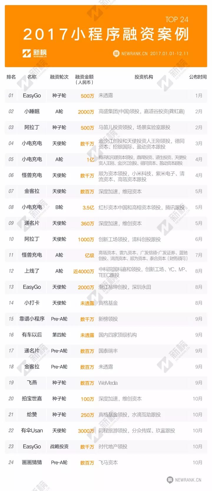 2017年,从出生时的万众瞩目,到低谷期之后的崛起,小程序已经成为互联网焦点,迎来了不少资本的追逐。那么,到底有多少资本涌入了小程序赛道呢?