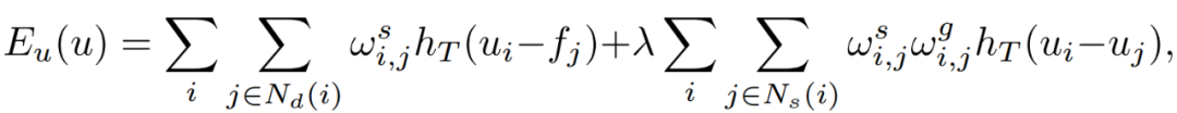 通过使用截断Huber惩罚函数的高度灵活性,我们可以有效构建一个高效的目标函数来实现多功能的平滑处理。在给定输入图像f和引导图像 g 的前提下,输出图像 u 是下列目标函数的解: