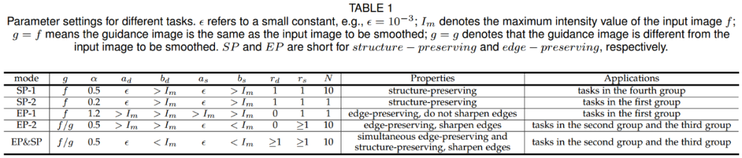 图像平滑滤波在计算机视觉以及图形图像学领域有着广泛的应用,同时不同的应用任务往往对平滑滤波特性有着不同的需求。然而当前大部分滤波器其内在平滑特性往往是固定的,因此只能适用于部分任务,同时当前大部分算法并没有对应用任务作出明确分类,因此其应用场景并不是很明确。为此,我们首先将大部分应用任务分为以下四类。