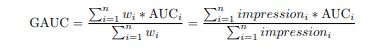 阿里在论文:Deep Interest Network for Click-Through Rate Prediction中提出了group auc来处理上述问题。公式如下: