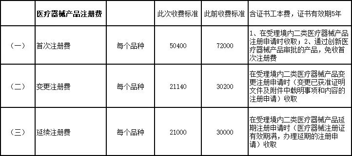 近日,湖南省发展和改革委员会官网发布《关于发布湖南省市场监督管理系统行政事业性收费标准的通知》,通知对湖南省药品注册费、医疗器械产品注册费、特种设备检验费等收费标准进行了调整。其中Ⅱ类医疗器械产品注册费首次注册、变更注册和延续注册费用在原来收费标准基础上都进行了下调。