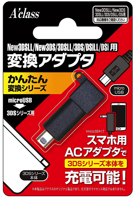 我嫌多一根线麻烦,而且说白了 3DS 系列充电只要最常见的「五福一安」规格就可以了,只要把「头」给匹配到,什么线都能用。于是在日亚找到了一款 micro USB 的转接头。在当时,micro USB 还是很流行的,PS4 和 Xbox 手柄、蓝牙耳机、音箱都会用到,而现在家里找个 micro USB 线应该也不难(应该不会把过往设备都替换了吧)。