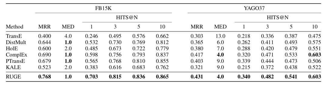 3. 本文提出的方法 RUGE 具有很好的通用型,对于不同的逻辑规则和不同置信度的规则的鲁棒性较好。