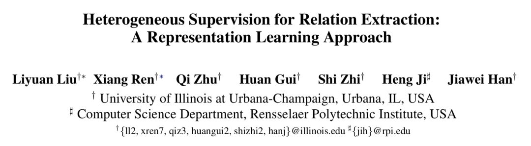 本文首次提出使用表示学习的方法为关系抽取提供异源监督,这种使用表示学习得到的高质量的上下文表示是真实标签发现和关系抽取的基础。