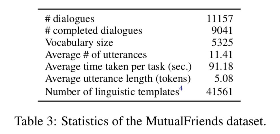 本文研究了对称合作对话(symmetric collaborative dialogue)任务,任务中,两个代理有着各自的先验知识,并通过有策略的交流来达到最终的目标。本文还产生了一个 11k 大小的对话数据集。