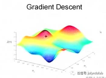 一个很重要的地方值得注意的是,梯度是有方向的,对于一个向量θ,每一维分量θi都可以求出一个梯度的方向,我们就可以找到一个整体的方向,在变化的时候,我们就朝着下降最多的方向进行变化就可以达到一个最小点,不管它是局部的还是全局的。
