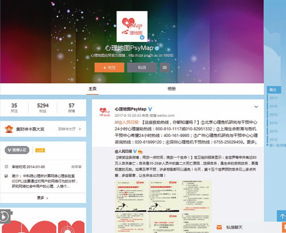 去年9月的一天,“心理地图PsyMap”志愿者收到一位网友的回复,跟对方进行沟通时,无意中发现她发微博说会在当晚0点服用安眠药自杀。此时距离0点只剩几个小时,志愿者立即跟对方确认,并询问她的具体位置。确认信息之后,一边沟通说服,一边报警,最终救下了这位姑娘。这从侧面说明,在微博上宣布要自杀的人,实际上可能是在寻求帮助或支持。