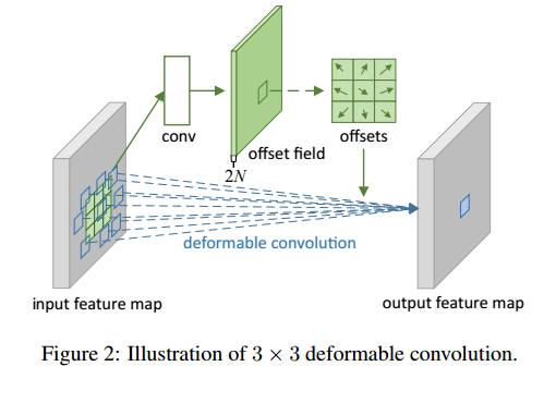 具体细节可以看考Deformable convolution Network的论文:https://arxiv.org/abs/1703.06211