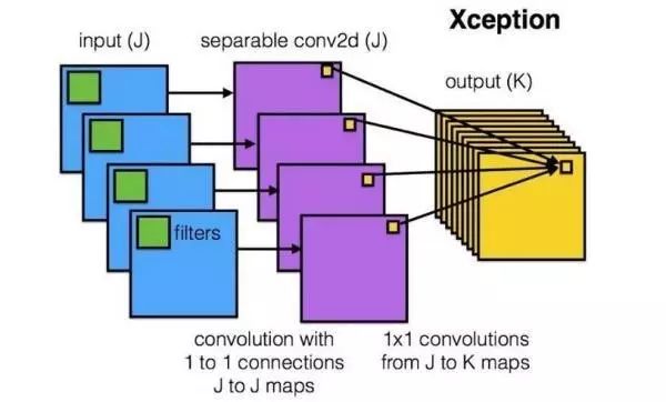 典型的模型如Xception Net,细节可阅读论文:https://arxiv.org/abs/1610.02357
