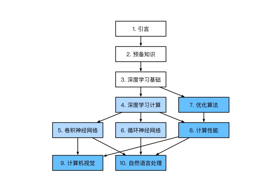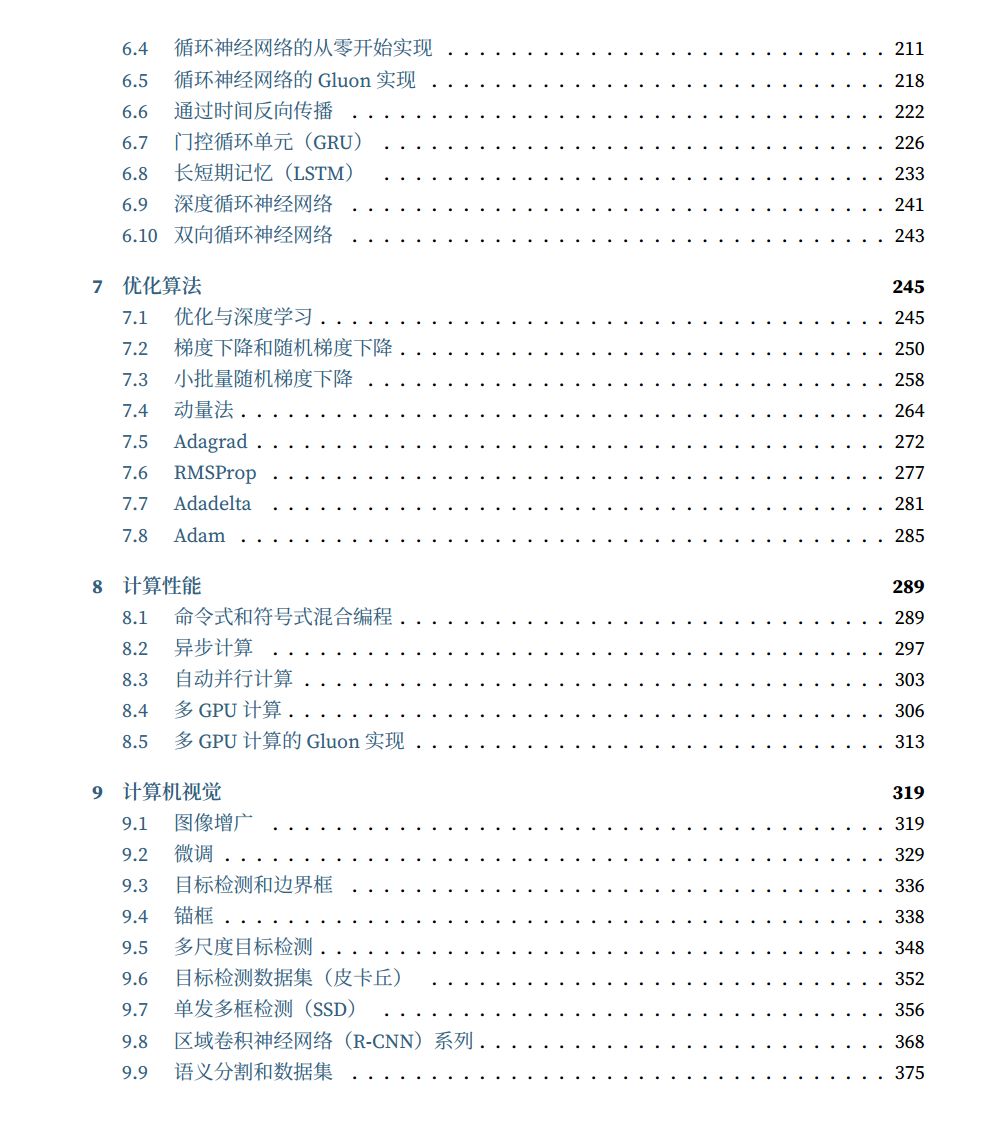 • 第三部分(第 7 章⾄第 10 章)讨论计算性能和应⽤。第 7 章评价了各种⽤来训练深度学习模型的优化算法。第 8 章检验了影响深度学习计算性能的⼏个重要因素。第 9 章和第 10 章分别列举了深度学习在计算机视觉和⾃然语⾔处理中的重要应⽤。这部分内容可供你根据兴趣选择阅读。