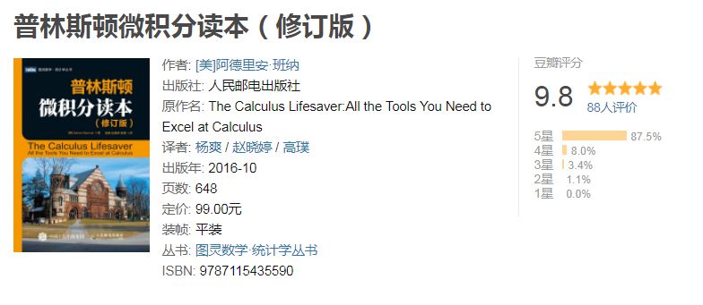 豆瓣评分 9.8 分的《普林斯顿微积分读本(修订版)》