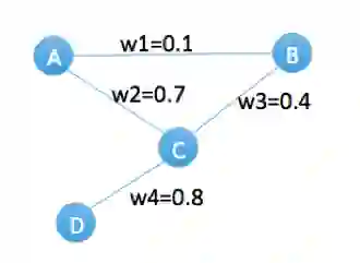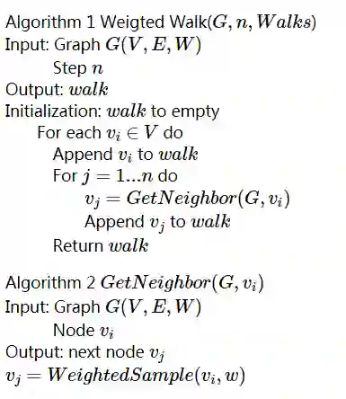 举个例子来说,假设游走2步,从节点A出发,随机取下一个邻居节点时,如果是random walk算法,它会等概率的游走到B或C节点,但是我们的算法会以7/8的概率取节点C,再会以8/12的概率游走到节点D,最终很大概率上会采出来一条序walk=(A,C,D),对于原始graph,A和D是没有关联的,但是通过weighted walk,能够有效的挖掘出A和D的关系,算法详见: