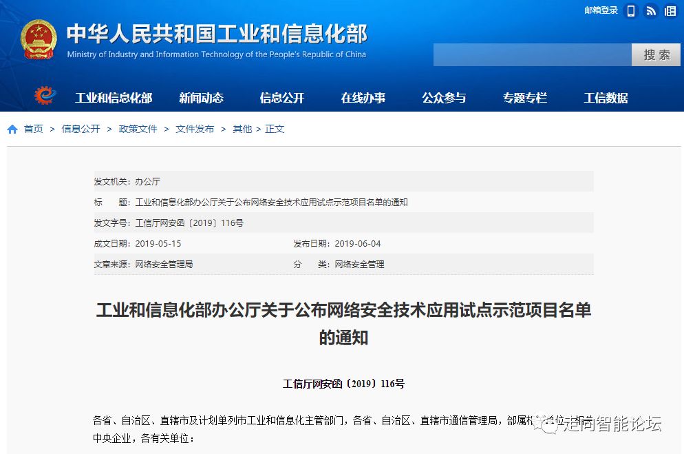 工信部:网络安全技术应用试点示范项目名单(附名单)