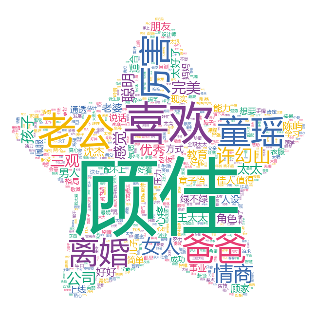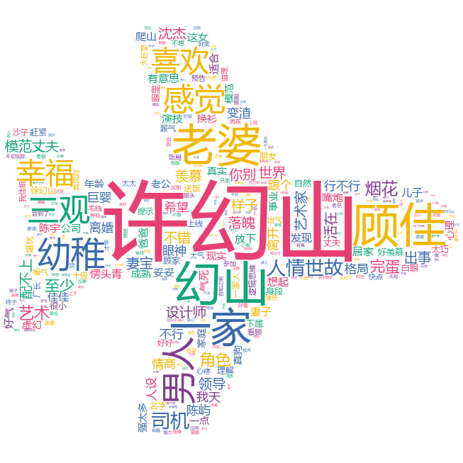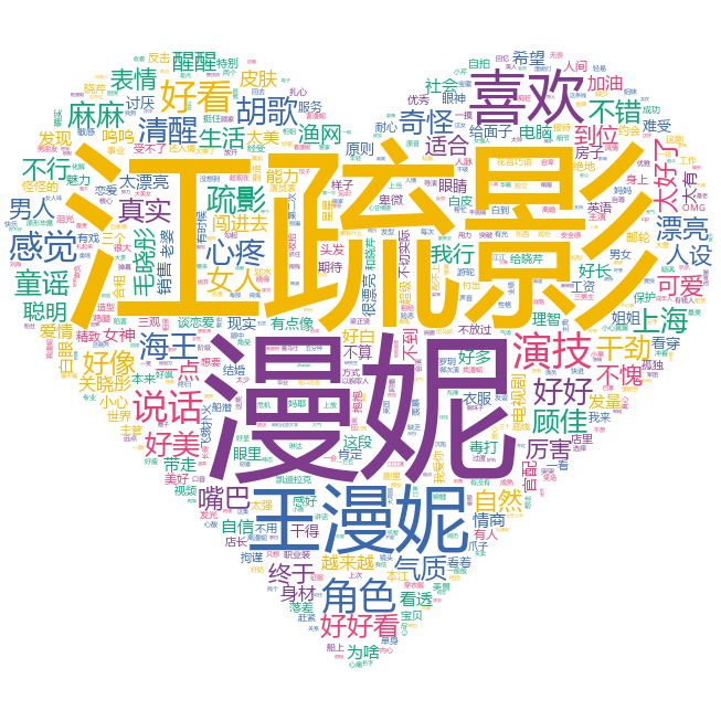 # 绘制词云图stylecloud.gen_stylecloud(text=' '.join(text1), max_words=1000, collocations=False, font_path=r'C:\Windows\Fonts\msyh.ttc', icon_name='fas fa-heart', size=653, output_name='./html/弹幕角色王漫妮-词云图.png')