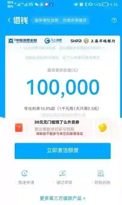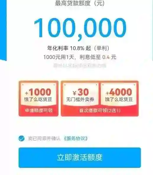 但是其实这个所谓的10万额度只不过是预授信额度,所谓的预授信就是后台大数据系统经过一些数据计算,初步估计客户可以借款额度,同时这个额度普遍都会有偏营销的需求,所以通常给的额度都会比较高。