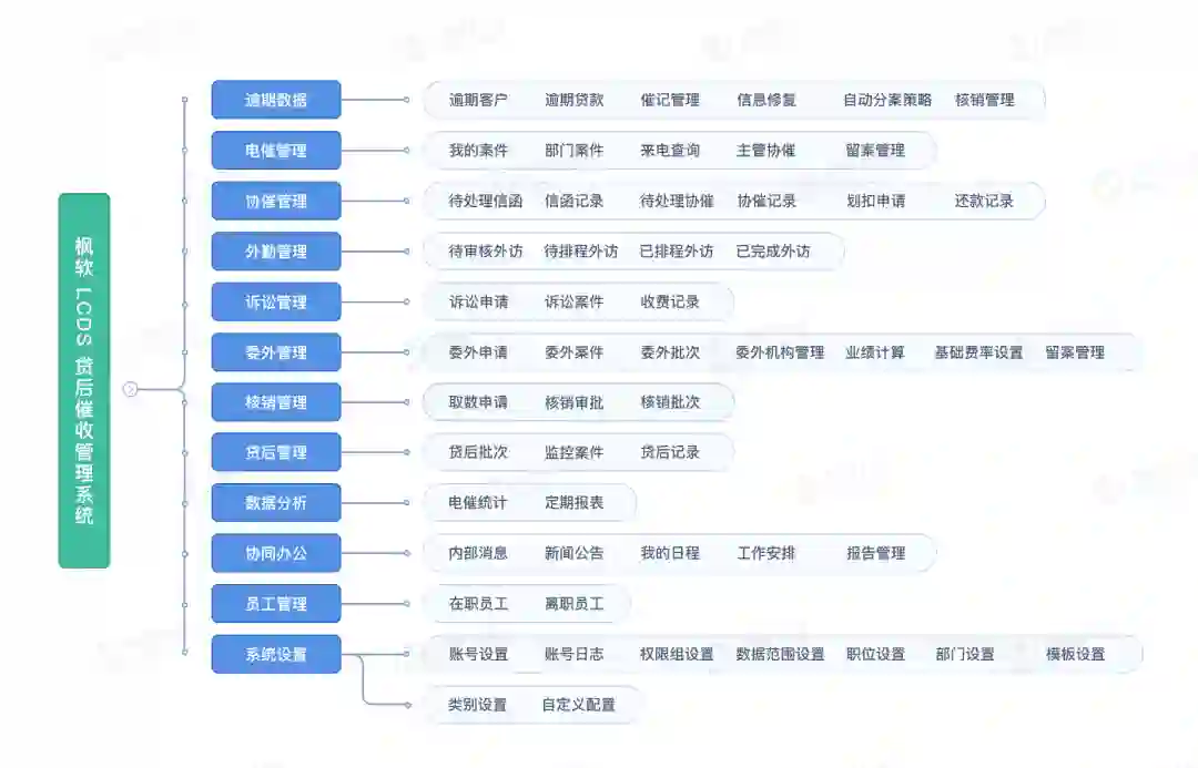 根据客户还款情况,满足客户结清、客户展期、客户代偿、客户借新还旧、贷款终止、息费减免、诉讼等一系列管理能力。