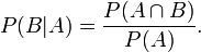 所以:P(A|B) = |A∩B|/|B|,接着分子、分母都除以|Ω|得到