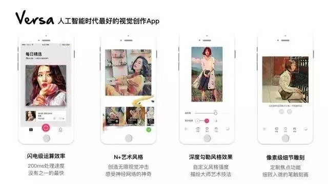 现阶段Versa产品形态主要为图片处理APP,表现形式上与国外图片特效软件Prisma类似,不过Versa实现图片风格迁移所用的时间更短,这完全基于 ConceptNet理论框架。