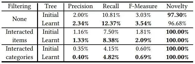 另外,树结构作为一种索引也是可以学习的,从而让其中的商品和概念可以被更快地提取到;这同时也有助于模型的训练。作者们也提出了一种树结构的学习方法,可以合并训练神经网络和树结构,见下文。