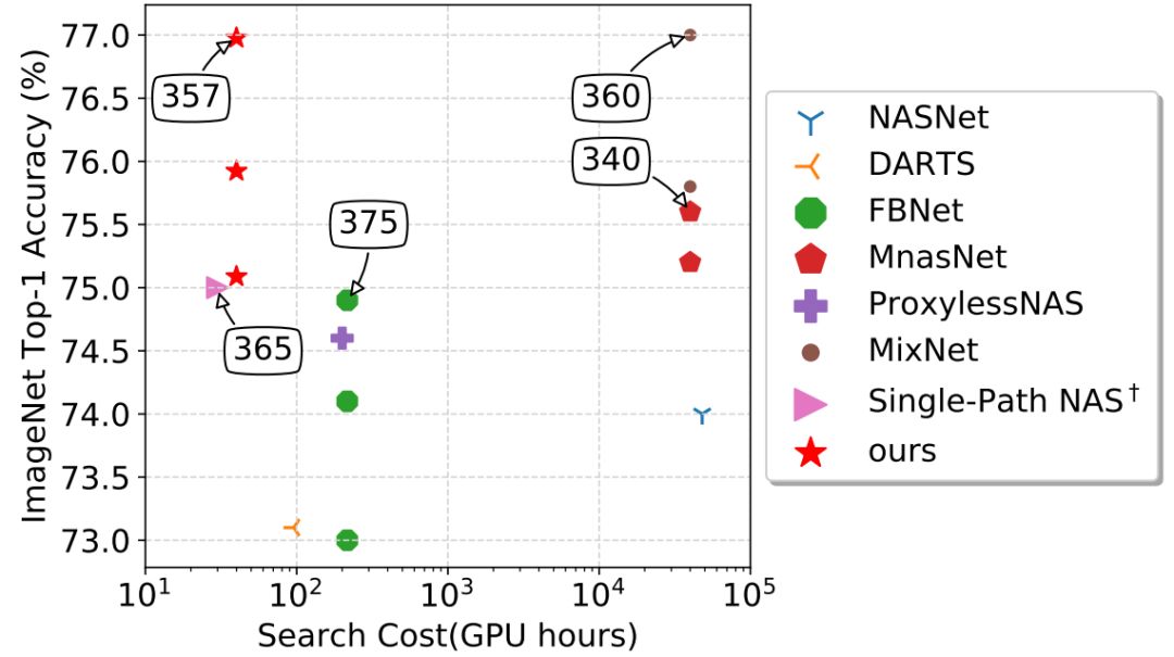 注:在ImageNet上77.0% Top-1 acc,仅357M FLOP,性能优于EfficientNet、MobileNetV3和MixNet等网络