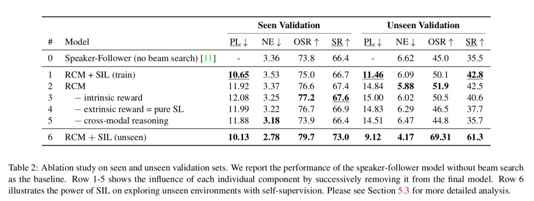 Baseline:Random、seq2seq、RPA 和 Speaker-Follower。