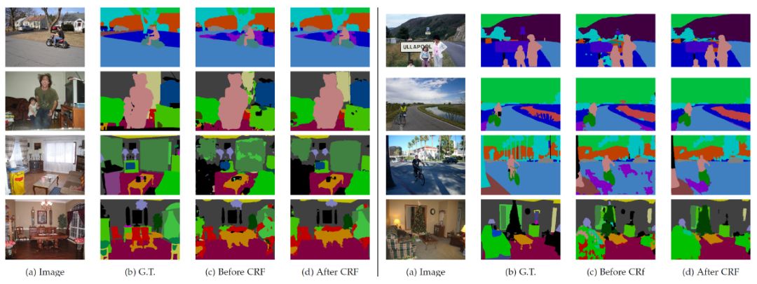 但是,CRF是一个后阶段的处理过程,它使DeepLabv1和DeepLabv2变为不是端到端的学习框架。并且它是不在DeepLabv3和DeepLabv3 +中使用。