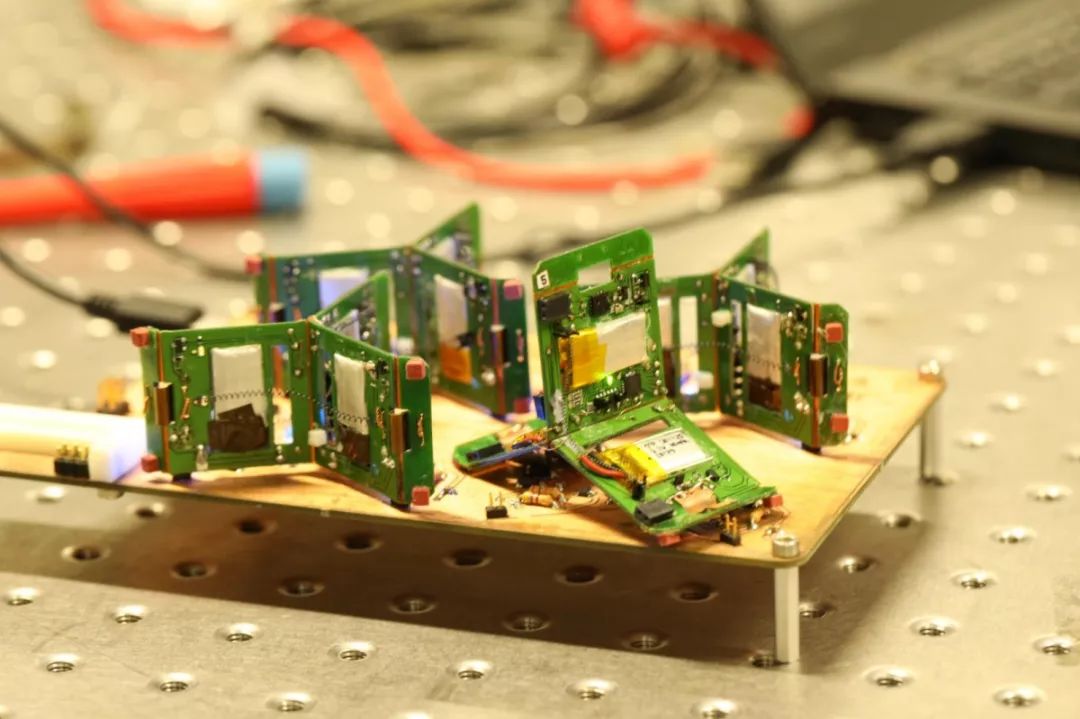 Tribots的重量仅为 10 克,因其基本是由轻薄的PCB 板折叠而成,所以能大批量生产。如果通过批量化生产,能够使每个Tribots的成本降至1美元,那么就可以在目标区域放置成百上千个Tribots,一两小时左右它们就能完成对地形的测量和表征、寻找辐射点或热点等操作。