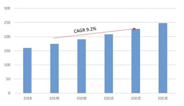 全球机器视觉工业领域市场规模趋势(单位:亿美元)(数据来源:BCC)