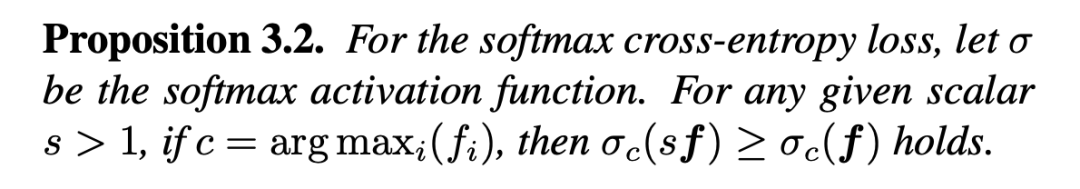 换句话说,Logit 向量的大小增大,将造成更大的 softmax 置信度分数,但是不影响分类结果接下来分析对交叉熵训练目标的影响,如果训练目标采用下面这个交叉熵损失,那么训练过程中损失值不断减小,会使得 Logit 范数不断增大,由上述推论(2)可知会得到更高的 softmax 置信度分数。