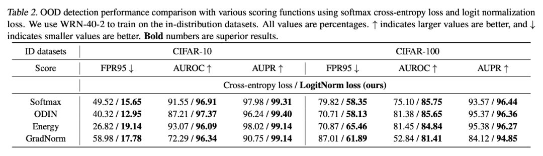 这里采用最基本的 MSP 分数做 OOD 检测,可以看到 LogitNorm 在不同数据集上提升比较明显。