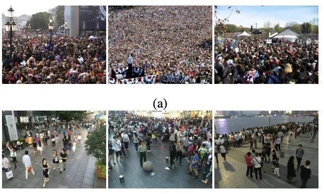 上海科技数据集是一个大规模的人群统计数据集。它由1198张带注释的群组图像组成。数据集分为两部分,A部分包含482张图像,B部分包含716张图像。A部分分为训练和测试子集,分别由300和182张图像组成。B部分分为400和316张图像组成的序列和测试子集。群组图像中的每个人都有一个靠近头部中心的点进行注释。总的来说,该数据集由33065名带注释的人组成。A部分的图像是从互联网上收集的,而B部分的图像是在上海繁忙的街道上收集的。