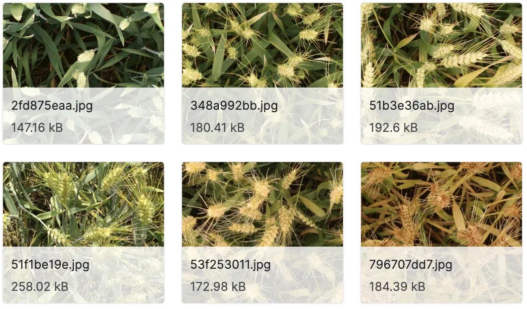 检测小麦穗是一项重要任务,可以估计相关性状,包括穗种群密度和穗特征,如卫生状况、大小、成熟阶段和芒的存在。本数据集包含 4,700 张高分辨率 RGB 图像和 190,000 个标记的小麦头,这些小麦头采集自世界各地不同生长阶段的不同基因型的多个国家。