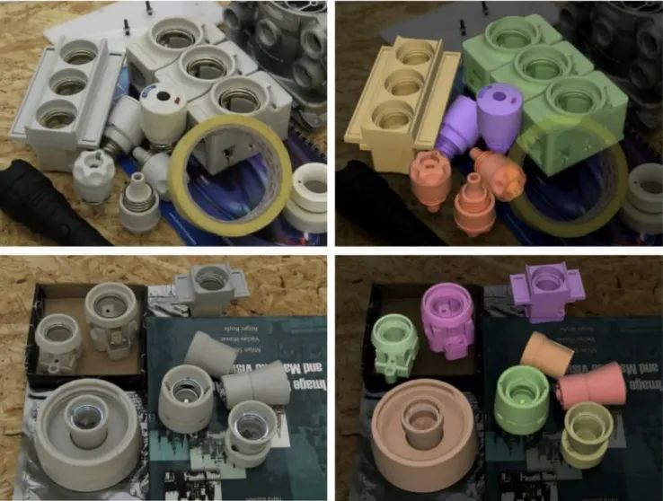 该数据集采集的目标为工业应用、纹理很少的目标,同时缺乏区别性的颜色,且目标具有对称性和互相关性,数据集由三个同步的传感器获得,一个结构光传感器,一个RGBD sensor,一个高分辨率RGBsensor,从每个传感器分别获得了3.9w训练集和1w测试集,此外为每个目标创建了2个3D model,一个是CAD手工制作的另一个是半自动重建的。训练集图片的背景大多是黑色的,而测试集的图片背景很多变,会包含不同光照、遮挡等等变换(之所以这么做作者说是为了使任务更具有挑战性)。