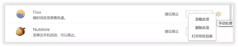 通过火绒内置的启动项优化,用户还可以手动处理启动项,可选择忽略、删除或者打开开机启动程序所在的目录,方便用户自定义不同的开机项。