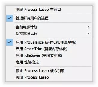 Process Lasso 默认的优化策略是 CPU 用量平衡模式