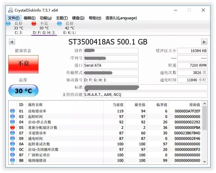检测硬盘出现不良的状态,需要注意数据安全和更换硬件