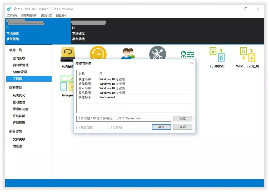 如果以上方案都不能帮助你解决好系统卡顿的问题,可以祭出「大杀器」:重装系统。Windows 10 系统内置了备份和恢复的功能,所以建议大家一个季度定期创建系统映像备份文件。使用 Dism++ 工具箱的系统备份功能可快捷备份系统映像。