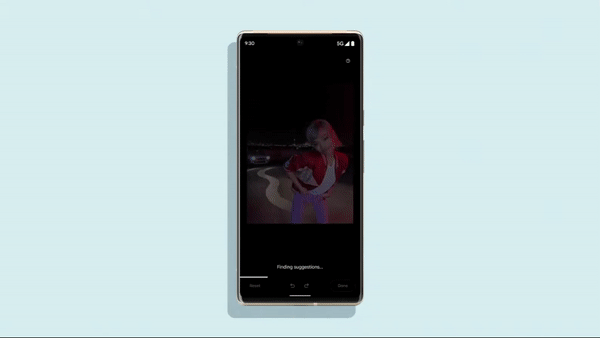 照片拍摄功能上,新的 Magic Eraser 功能则会在 Google 相册中提供图像编辑建议。Magic Eraser 能够自动识别图像中的杂乱背景并以高亮的方式给出去除建议。用户也可以手动点击进行消除。