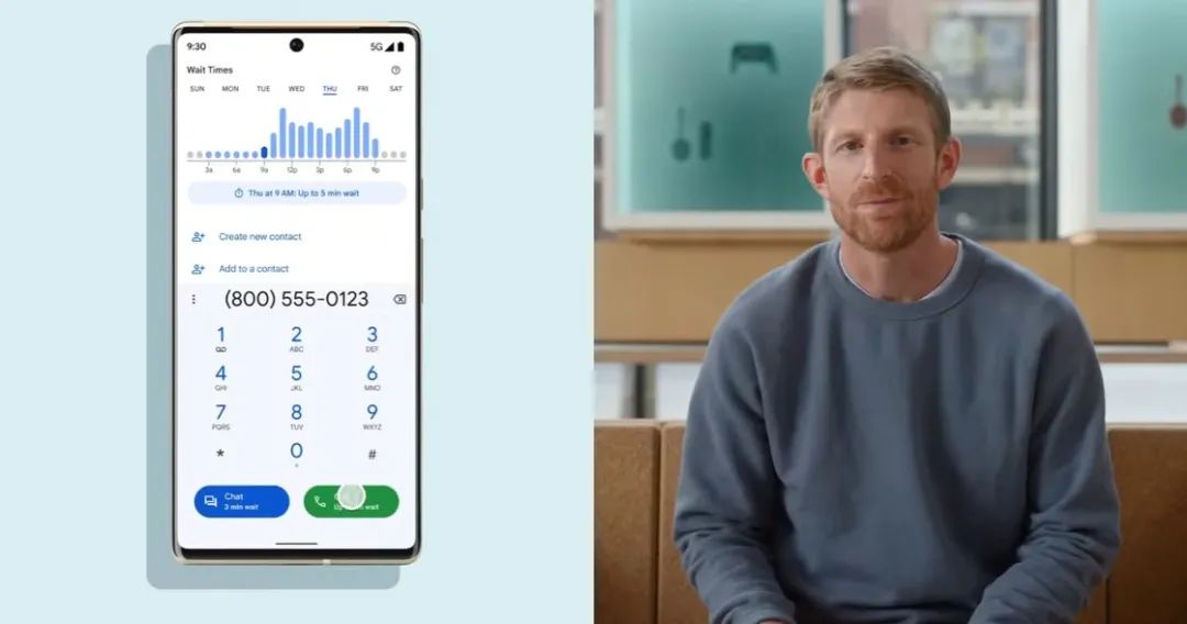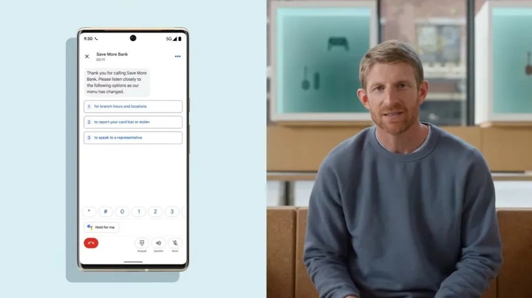 语音转文本的另一项应用聚焦于商业服务通话场景。Call Screen 功能现在能够智能识别并屏蔽骚扰电话,拨号方陈述合理的拨号原因后才能与用户接通对话;拨打服务电话时,为用户提供人工服务等待时间柱状图进行参考,识别等待背景音乐方便用户屏蔽,还能自动根据语音提示将按键菜单信息整理为屏幕选项供用户点击操作。