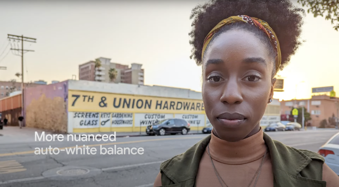 强光导致的人脸惨白、弱光导致的肤色发黑或异色光照导致的显像色偏,经过新的算法训练和测试,都得到了显著的修复和改善。Pixel 6 还搭载了更为精准的人脸识别、自动白平衡和曝光偏好算法,确保不同肤色人种都能够以最接近本真色彩的形象出现。