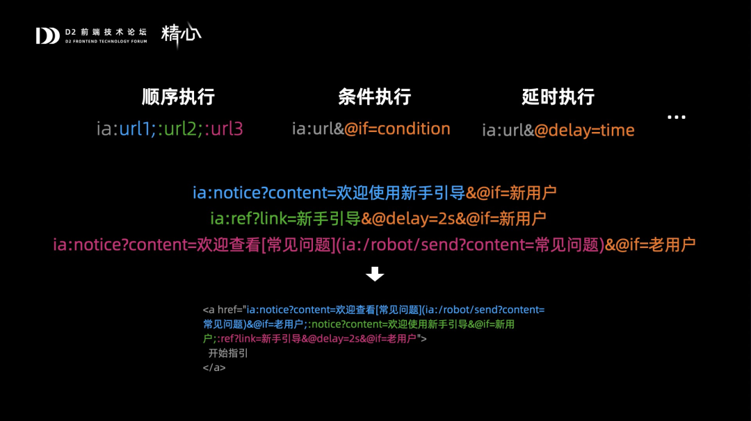 在我们的定义中,url可以被串联顺序执行,也可以加上@if,条件执行,还可以加上@delay延时执行,这样就可以将所有一系列的url组织成一个url,并在两种场景去分别触发。