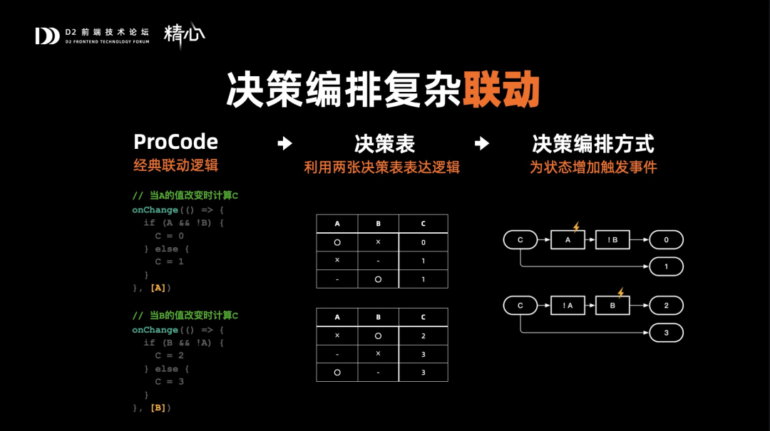 先看一下决策编排是怎么解决复杂条件的: