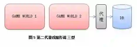 游戏服务器压力拆分后得意缓解,但是两台游戏服务器同时访问数据库,大量重复访问,大量数据交换,使得数据库成为下一个瓶颈。于是形成了数据库前端代理(DB Proxy),游戏服务器不直接访问数据库而是访问代理,再有代理访问数据库,同时提供内存级别的cache。早年 MySQL4之前没有提供存储过程,这个前端代理一般和 MySQL跑在同一台上,它转化游戏服务器发过来的高级数据操作指令,拆分成具体的数据库操作,一定程度上代替了存储过程: