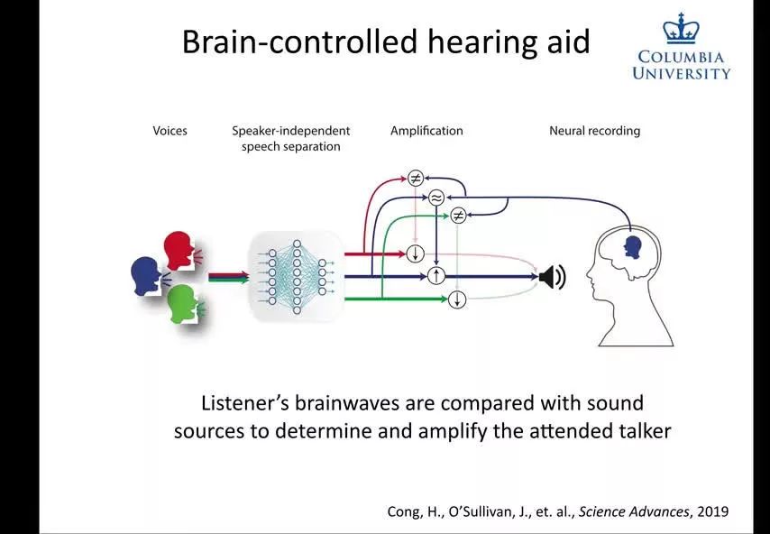 于是该团队将语音分离算法与神经网络、以及模仿大脑自然计算能力的复杂数学模型相结合,开发了一款脑控助听器,使用脑电波来判断哪些声音应该被放大,哪些声音应该被抑制。
