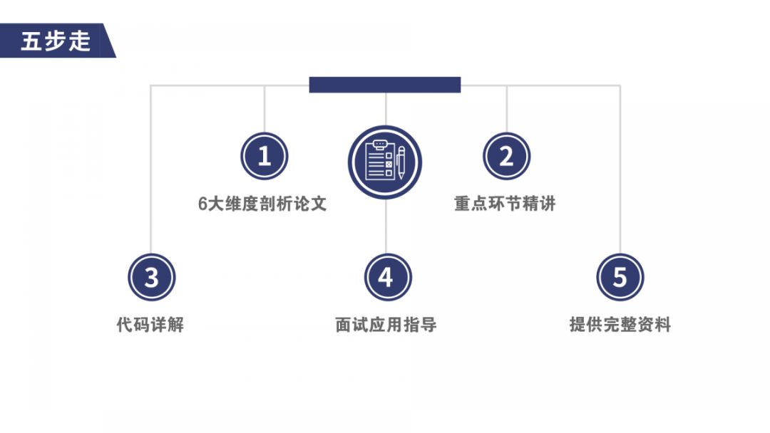 完成前两天的任务以后,我们会在第三天提供论文的精讲视频,通过观看视频,对论文中最重要的内容进行提取,针对模型/算法/训练技巧,数据集,试验,结果分析等,构建讲解脉络,逐一讲授分析脉络中每一块重要内容,