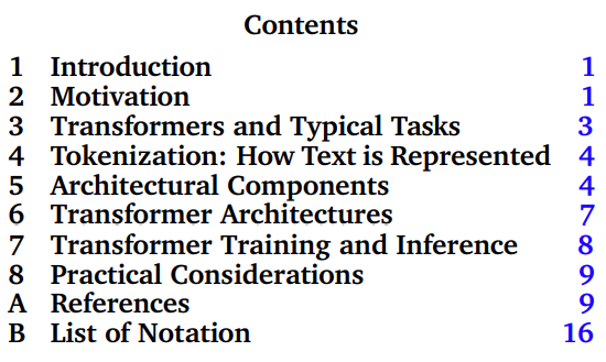 这篇论文的主体部分是第 3-8 章,分别介绍了 Transformer 及其典型任务、tokenization、Transformer 的架构组成、Transformer 的训练和推理、实际应用。