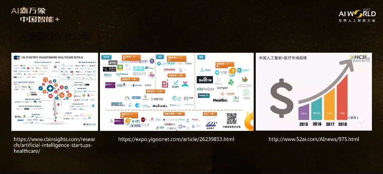 实际上AI促进医学发展不只体现在学术界,同样也体现在工业界。现在美国有上百家的创业公司从事医药各方面的数据工作,涵盖影像、语音交互等各个方面。中国数字医疗网曾对AI在医药方面的应用市场情况做过预测,预测结果表明市场前景一片大好。而随着AI应用的不断发展,也涌现出来一些问题。
